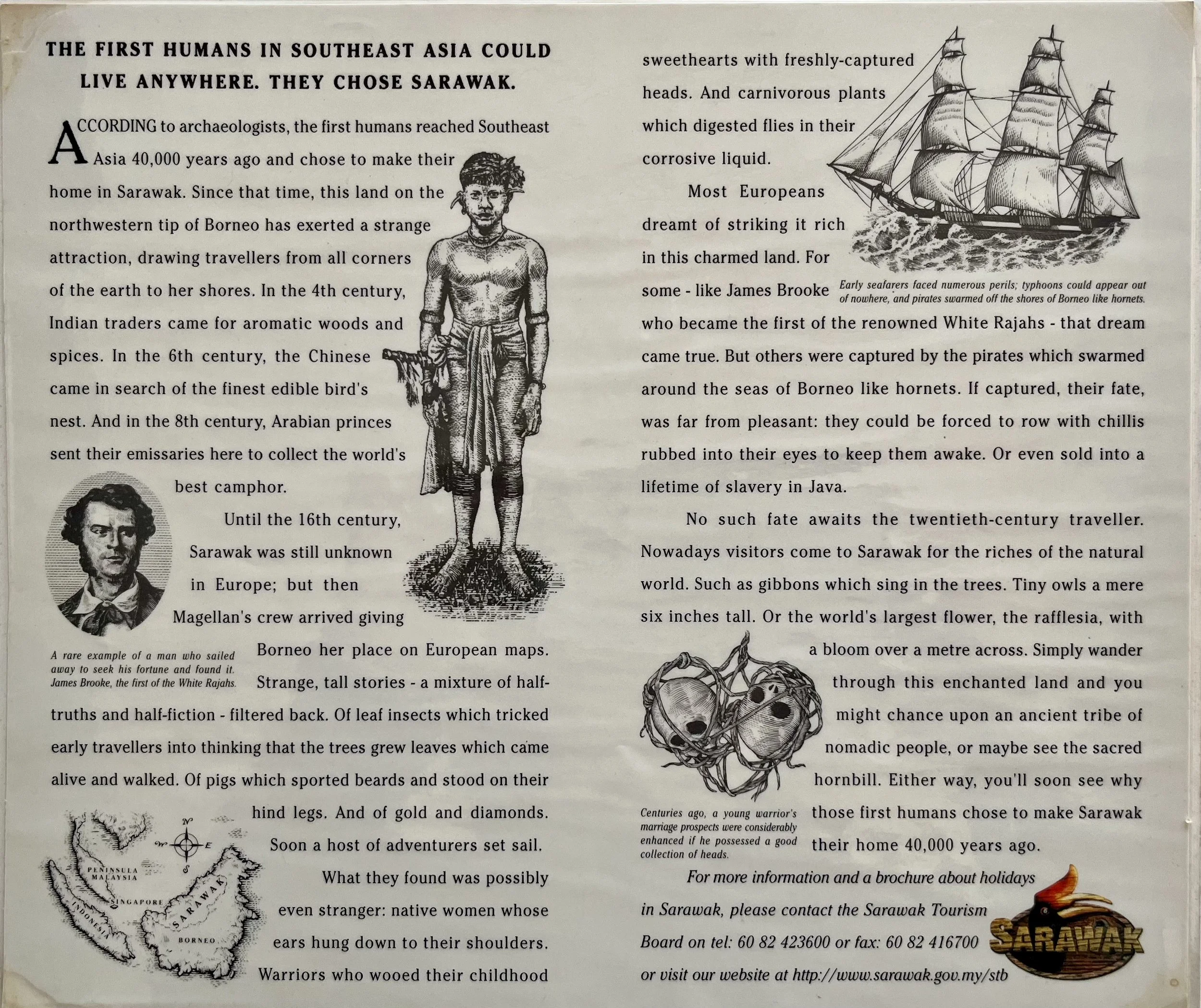 Long copy ads may be out of style but this is the first one I ever wrote. It was for Sarawak Tourism Board and espoused the amazing wonders travelers have always found there—in past centuries and in the present day.